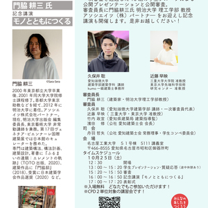 審査員長に門脇耕三氏 明治大学 理工学部 教授アソシエイツ(株)パートナー をお迎えし記念講演「モノとともにつくる」も開催します。是非お越しください!
