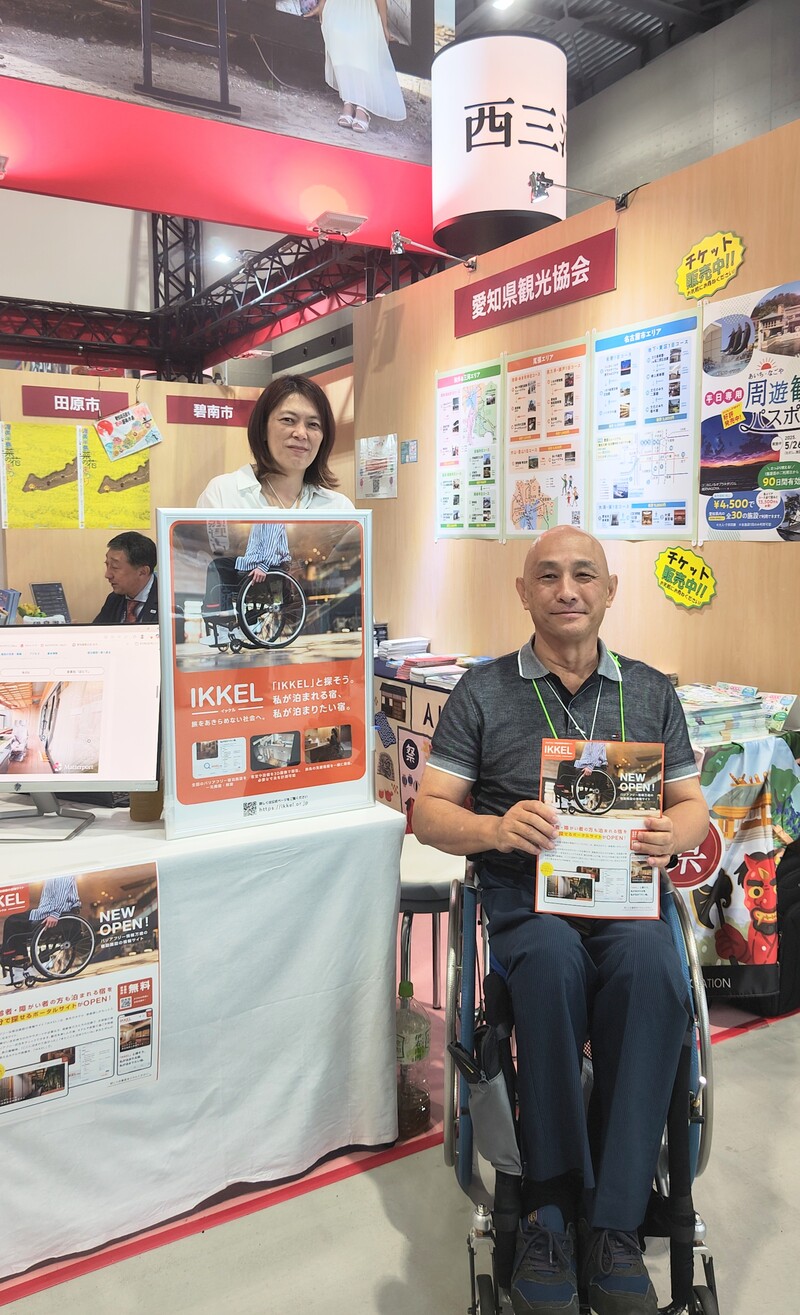 9月25日から28日の4日間、愛知国際展示場 Aichi Sky Expoにて、ツーリズムEXPOジャパン2025 愛知・東海北陸が開催されました。 バリアフリー部会では(一社)愛知県観光協会のブースの一角をお借りして「バリアフリーな宿泊施設の情報サイト・IKKEL」のPRを行ないました。前半2日間は業界関係者との商談会、後半2日間は一般来場者へのPRで、のべ700名の方がスマホでIKKELのサイトへアクセスし、その場で3Dウォークスルーをご覧いただきました。 IKKELのサイト上では、3Dウォークスルーで客室の様子を見ることができるので、車いす使用の方が客室を利用できるかどうかの判断材料になり、さらに通路や開口部の有効幅、カウンターや浴槽へりの高さなどをユーザーが3D画像上で計測することも可能です。 現在、IKKELの掲載施設数は93施設となりましたが、これは私たちが実際に宿泊施設へ出向き、Matterportで3D画像を撮影し編集を行なったものです。「すごい!」「これは便利」など、スマホ上でウォークスルーを体験した多くの方々が驚かれ、この会場での反響に私たちも驚きました。